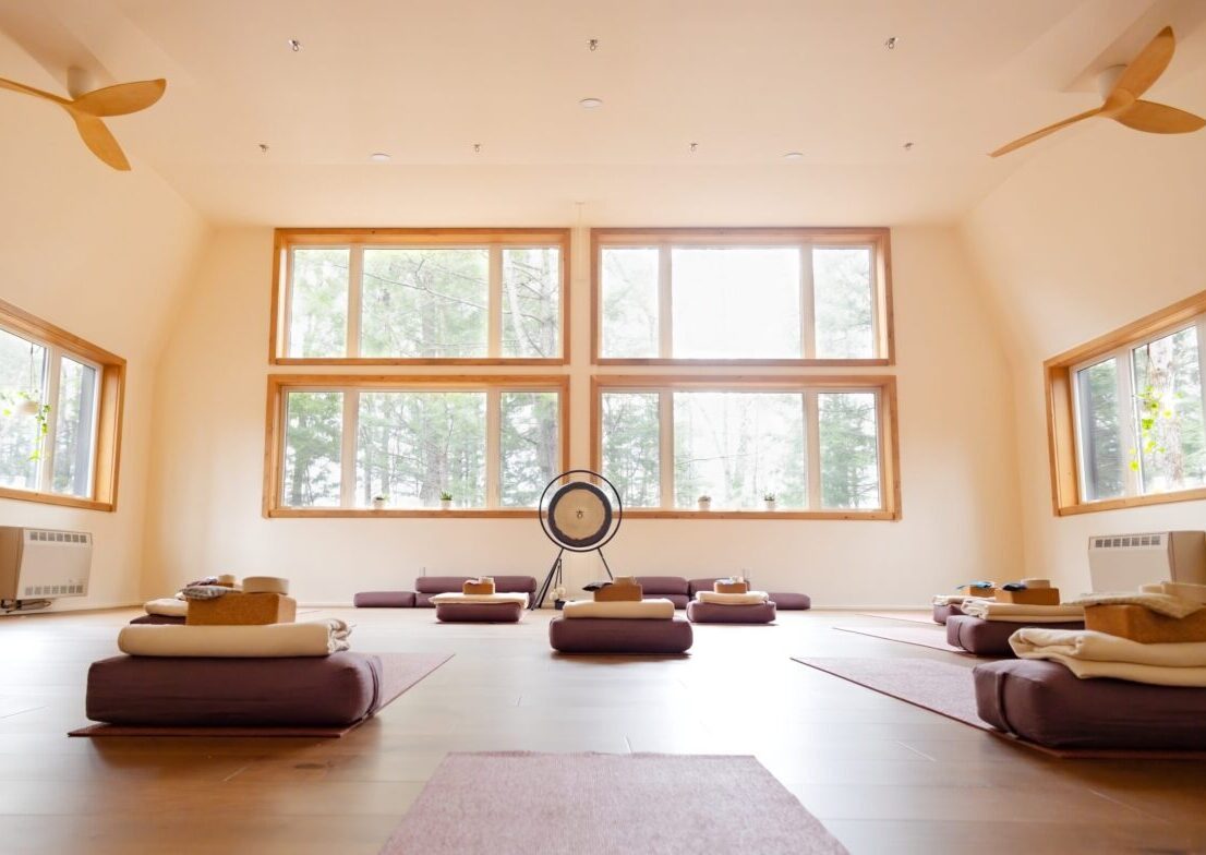 Radiance Studio is a brand new 100-square-foot space with stunning views of Algonquin scenery. Radiance features a sprung floor, new sound system, and is stocked with lots of comfy props to support our practices.